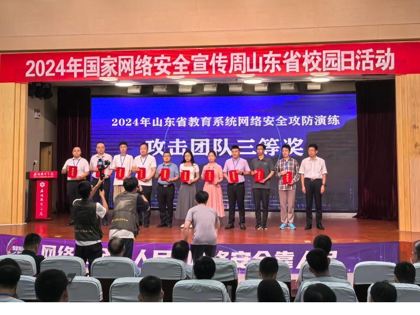 10月8日,山东省教育厅网络安全和信息化领导小组办公室公布了《2024年度教育系统网络安全攻防演练优秀攻击和防守团队名单》,学校取得第十二名的好成绩,被评为“优秀师生攻击团队”。
