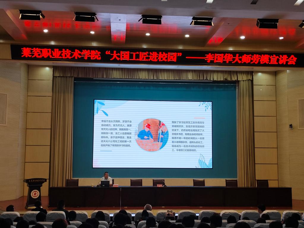 会上,李国华以“做爱岗敬业的劳动模范”为题,分享了他在建筑行业多年的实践经验和心得,鼓励学生们要不断学习、勇于创新,努力提升自身的专业素养,以适应快速发展的行业需求,并强调了工匠精神的重要性。同学们纷纷表示,要以李国华为榜样,努力学习,苦练技能,为社会发展贡献力量。