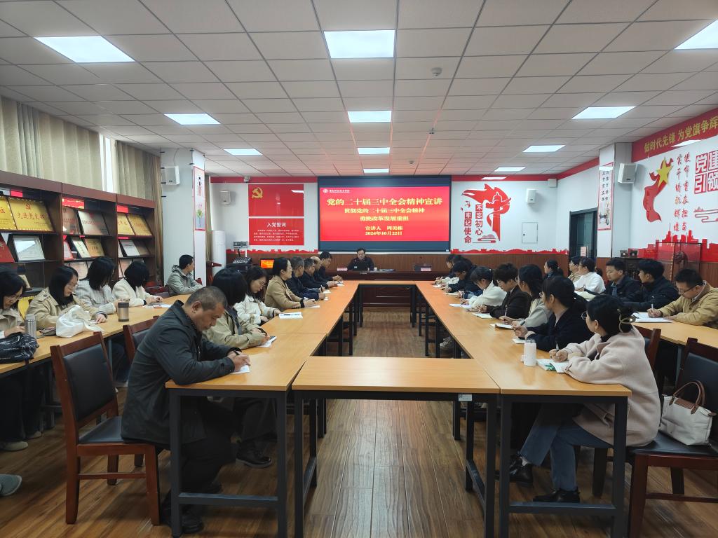 为进一步深入学习贯彻党的二十届三中全会精神,强化党员理论武装,夯实思想政治建设,10月22日,学校党委委员、副院长周美栋为智慧商贸与旅游系党总支全体党员讲授党的二十届三中全会专题党课。