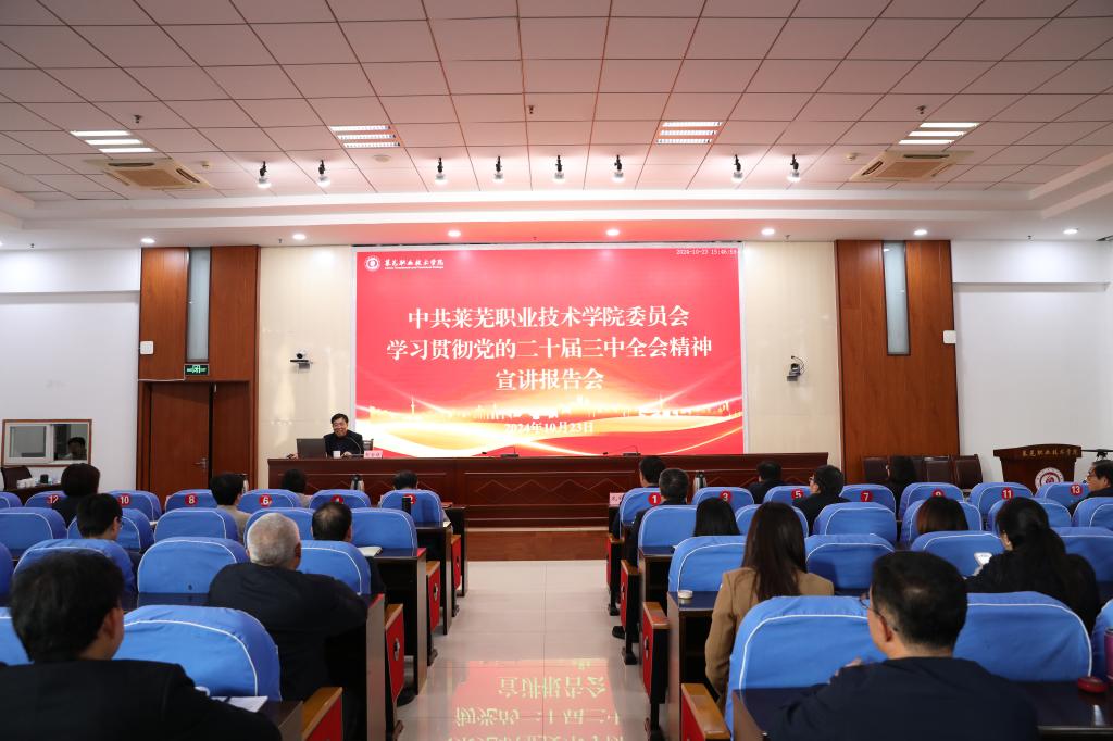 根据市委宣讲工作安排,结合学校实际,10月23日下午,学校举行学习贯彻党的二十届三中全会精神宣讲报告会。济南高校学习贯彻党的二十届三中全会精神宣讲团成员、学校思政教学部主任郝金镇作专题宣讲报告。学校党委班子成员出席会议。