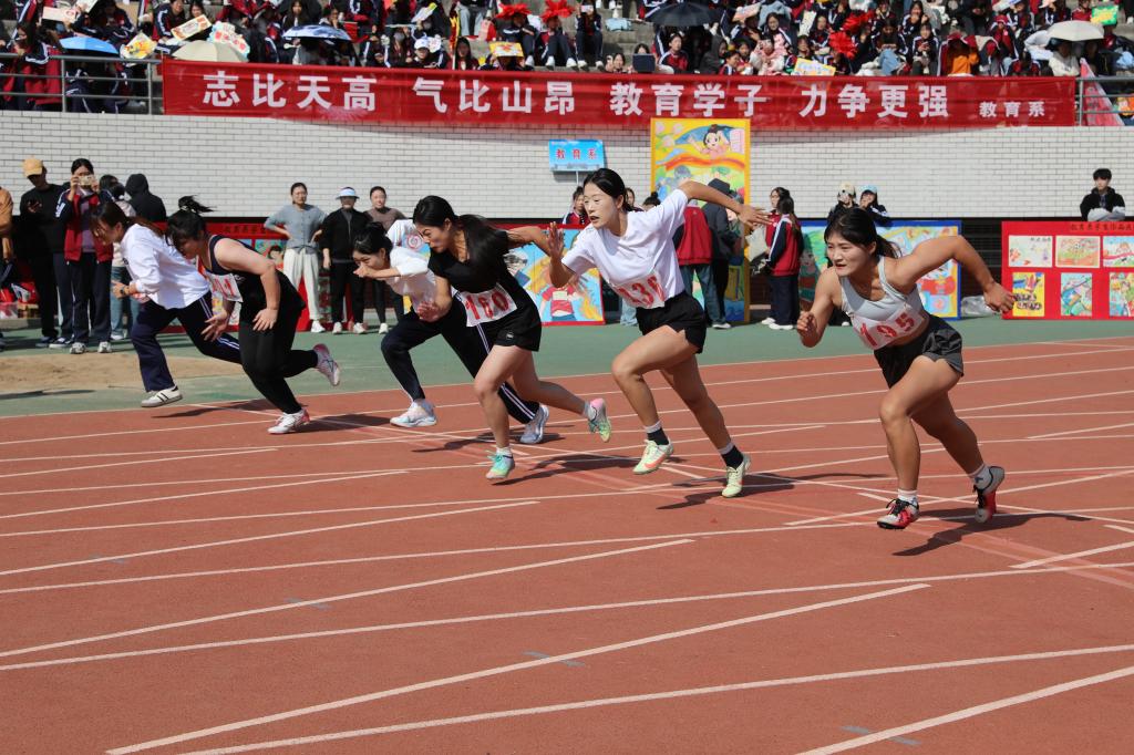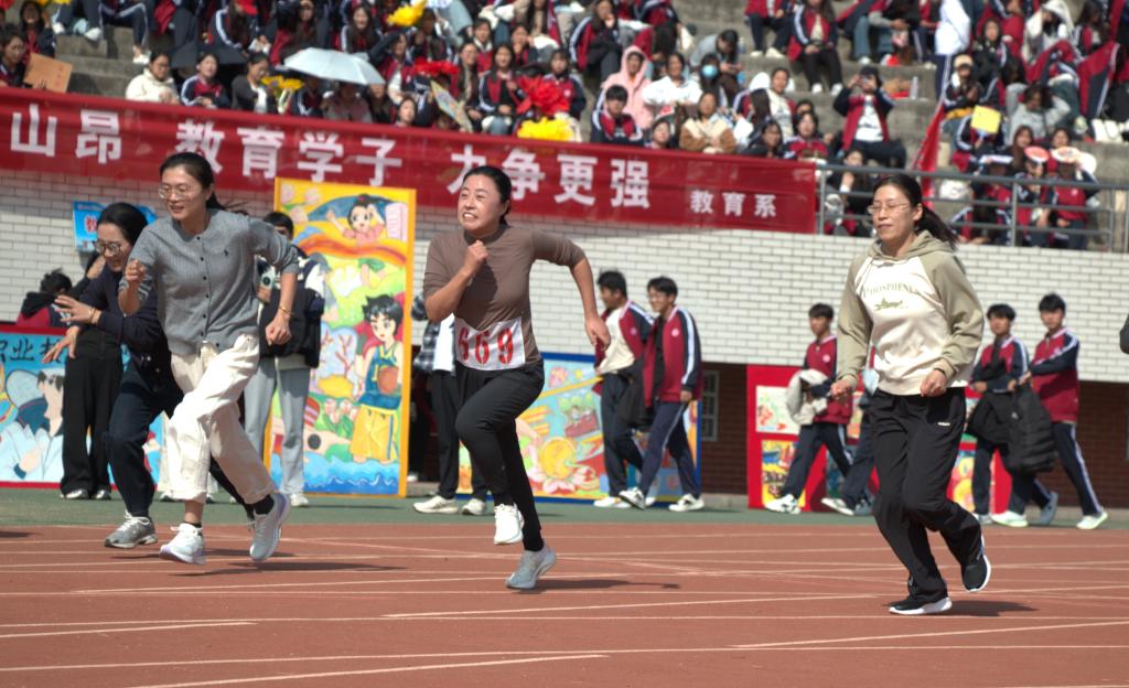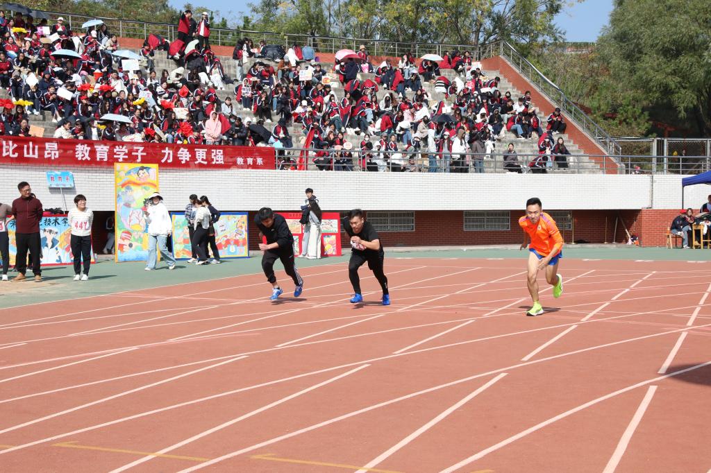 本届运动会共设置学生竞赛项目38个、教工竞赛项目33个,吸引349人次的学生运动员和378人次的教职工运动员积极参与比赛。各个竞赛项目有条不紊进行,高潮不断,尤其是学生男子800米项目、男子1500米项目,校运会纪录被刷新。同时,运动小火车、旋风跑、多人多足等趣味运动项目以其独特的挑战性,让每一位参与者都充分体验到了运动的乐趣与技巧。两天的运动会,运动员们展现出坚韧不拔的拼搏精神,深刻诠释了更高、更快、更强的体育真谛,彰显了卓越的竞技风采和团队协作的力量。