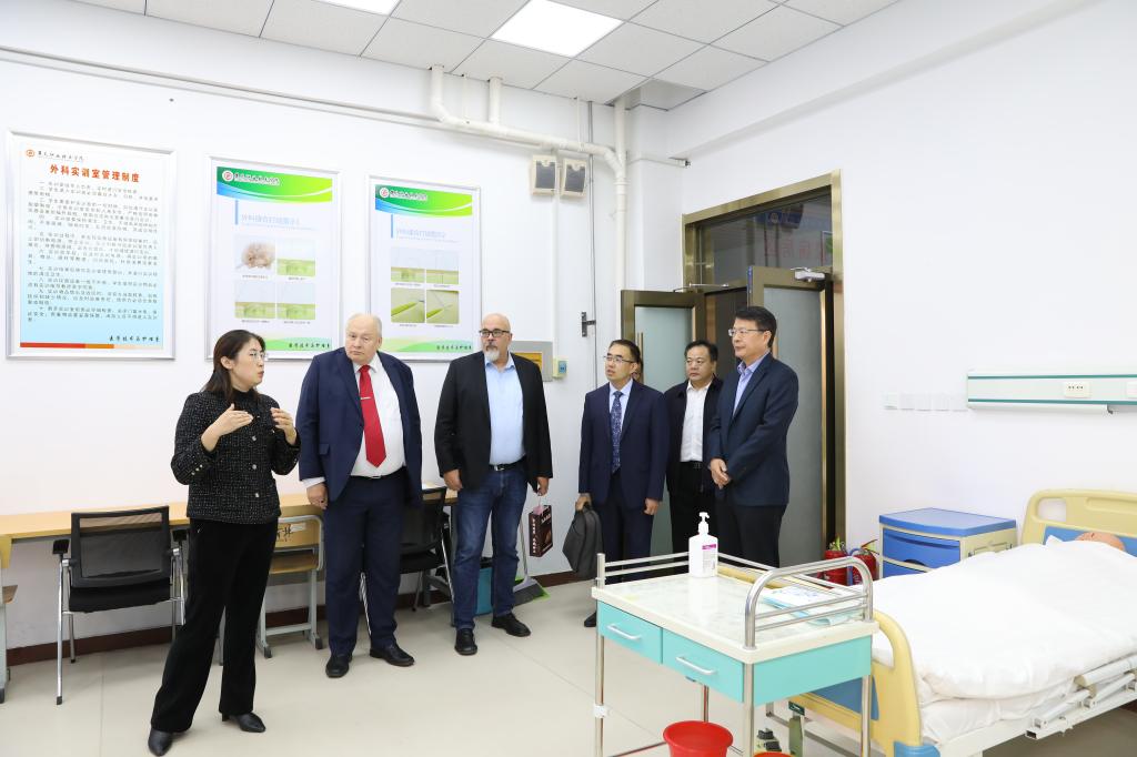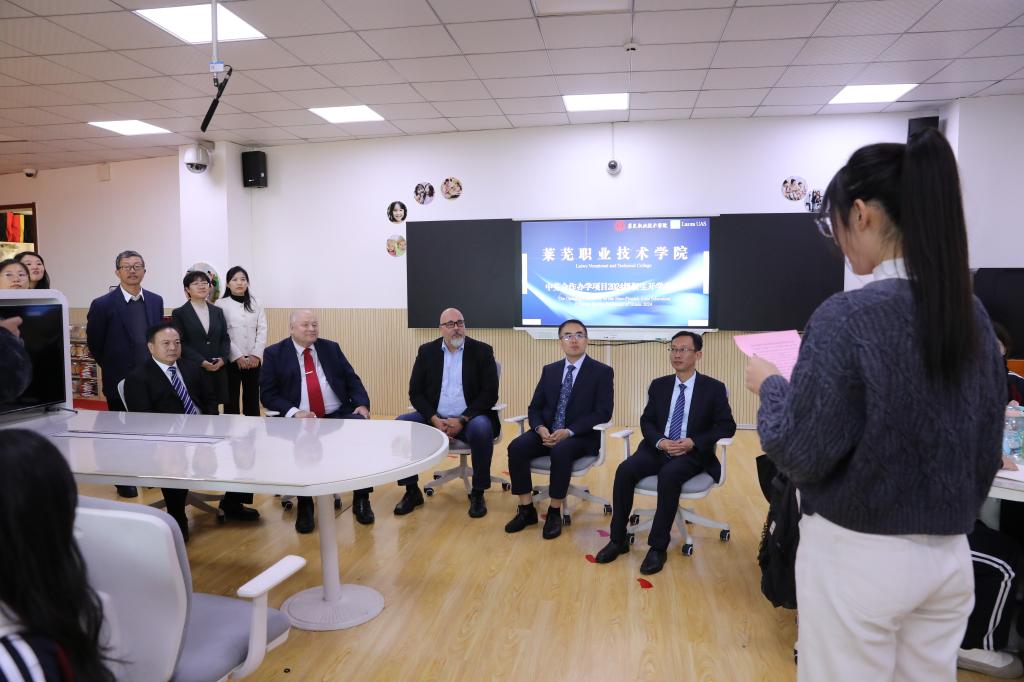 座谈会前,朱尼·马库斯·科斯基一行参加中芬合作办学项目2024级新生开学典礼。朱尼·马库斯·科斯基校长对新生表示热烈的欢迎和祝贺,希望他们能够珍惜学习机会,努力学习专业知识。随后,朱尼·马库斯·科斯基一行实地参观了学校医学技术与护理系。