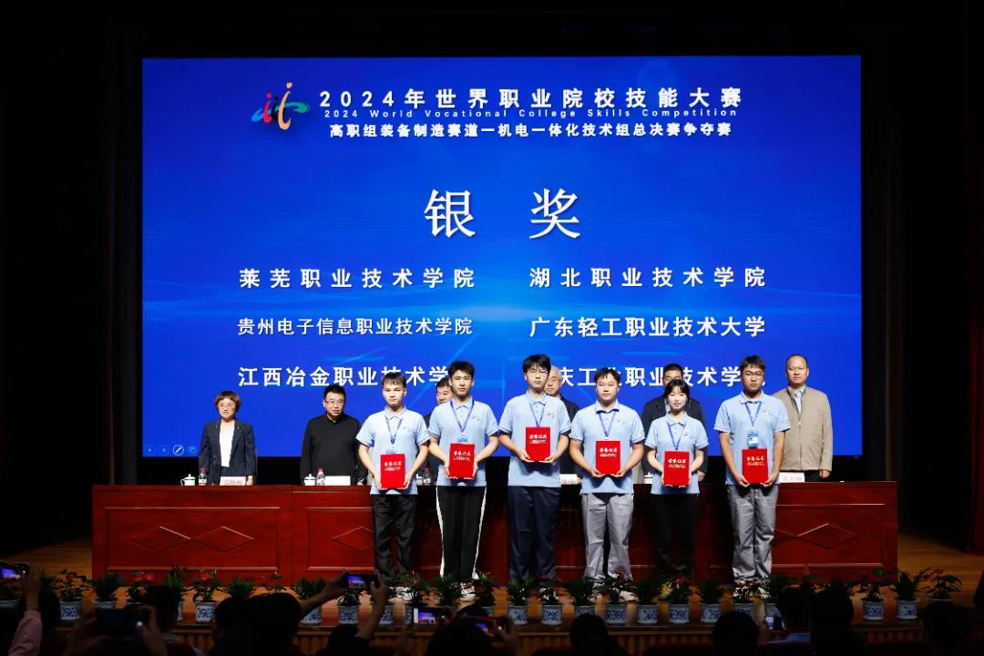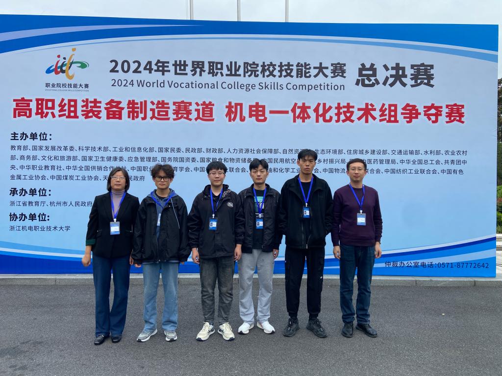 10月25日至28日,2024年世界职业院校技能大赛装备制造赛道机电一体化技术组赛项总决赛争夺赛在浙江机电职业技术大学隆重举行。来自全国30个省、市、自治区的60所职业院校的参赛队伍汇聚于此,同台竞技,尽展风采。经过激烈角逐,智能制造系学生孙高园、邢玉强、何昊宁、黄佳腾凭借卓越的技能与出色的团队协作,荣获该赛项银奖,为学校赢得了荣誉。