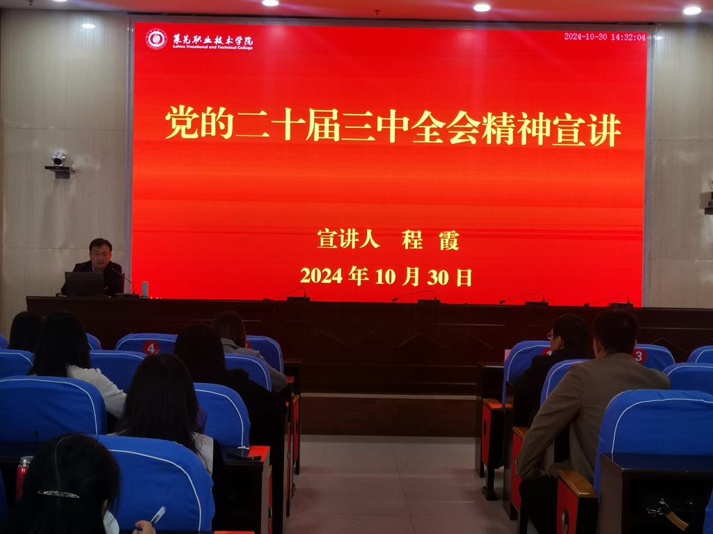 为进一步学习宣传贯彻党的二十届三中全会精神,使党的创新理论最新成果融入学校思想政治工作、贯穿教育教学全过程,10月30日下午,济南高校学习贯彻党的二十届三中全会精神青年师生宣讲团成员、学校思政教学部副主任程霞作专题宣讲报告。学校党委委员、党委组织部(党委统战部)部长刘铖出席会议并讲话。