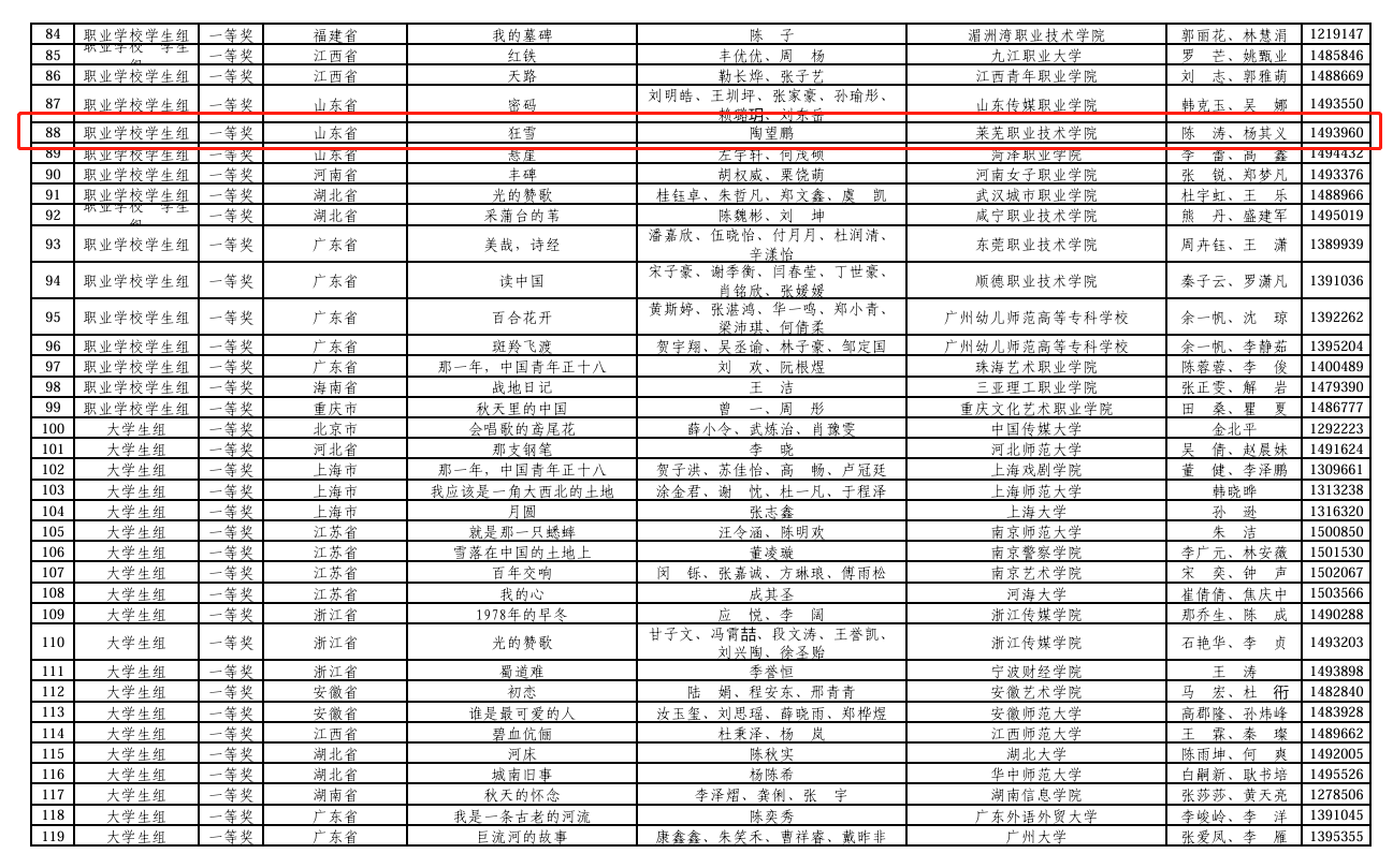 本次大赛由教育部、国家语委主办,中国教育电视台与浙江传媒学院承办,以“典耀中华,赓续文脉”为主题,学校参赛作品《狂雪》经过学校选拔、省赛推荐、全国复赛,最终作为山东省职业院校4个作品之一参加国赛线下决赛。经过激烈角逐,获得“诵读中国”经典诵读国赛一等奖。