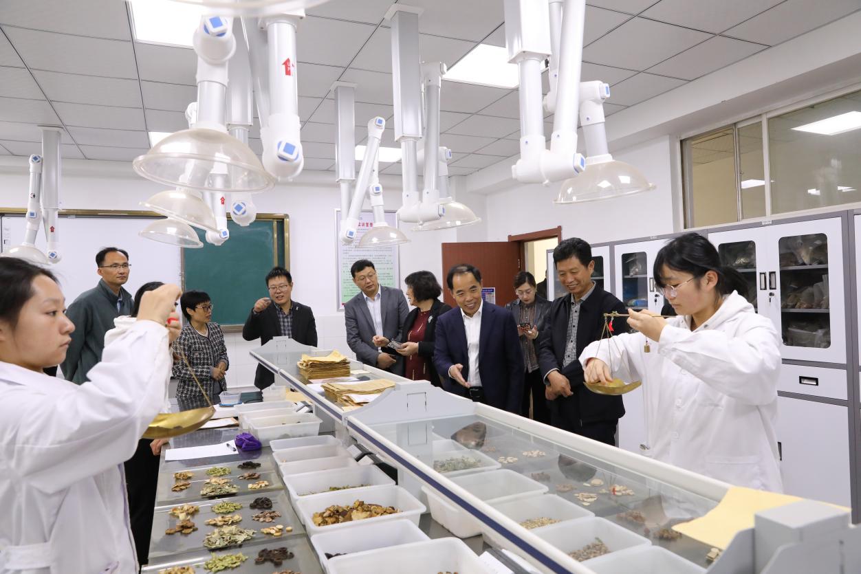 座谈会开始前,在李允实和任清华陪同下,李进京一行实地调研考察学校文物与艺术系、药品食品实训室。
