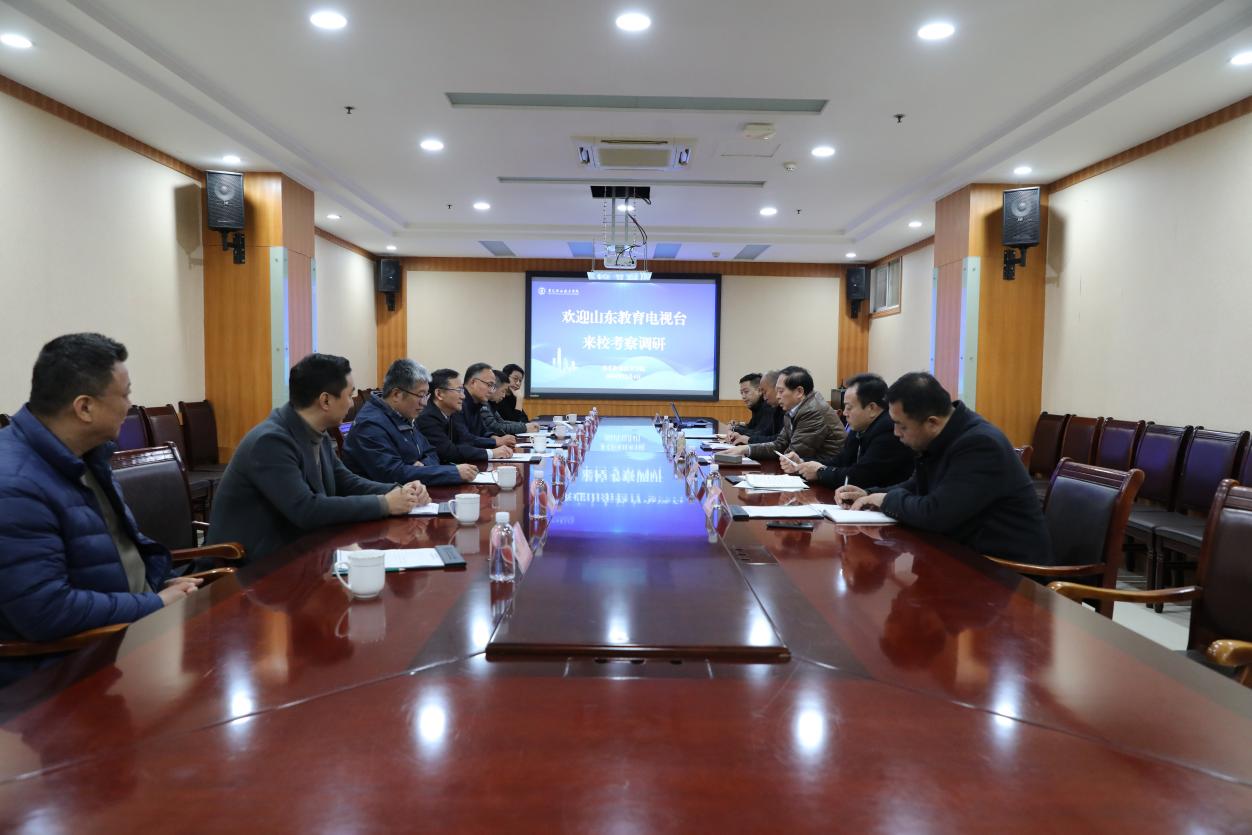 12月4日下午, 山东教育电视台党委原书记、台长祝令华,山东教育电视台党委委员、副台长李勇一行8人来学校就智慧校园、智慧食堂建设考察调研并举行座谈会。学校党委副书记、院长徐运国,党委委员、副院长周美栋出席座谈会。学校总务处相关负责人参加座谈。座谈会由周美栋主持。