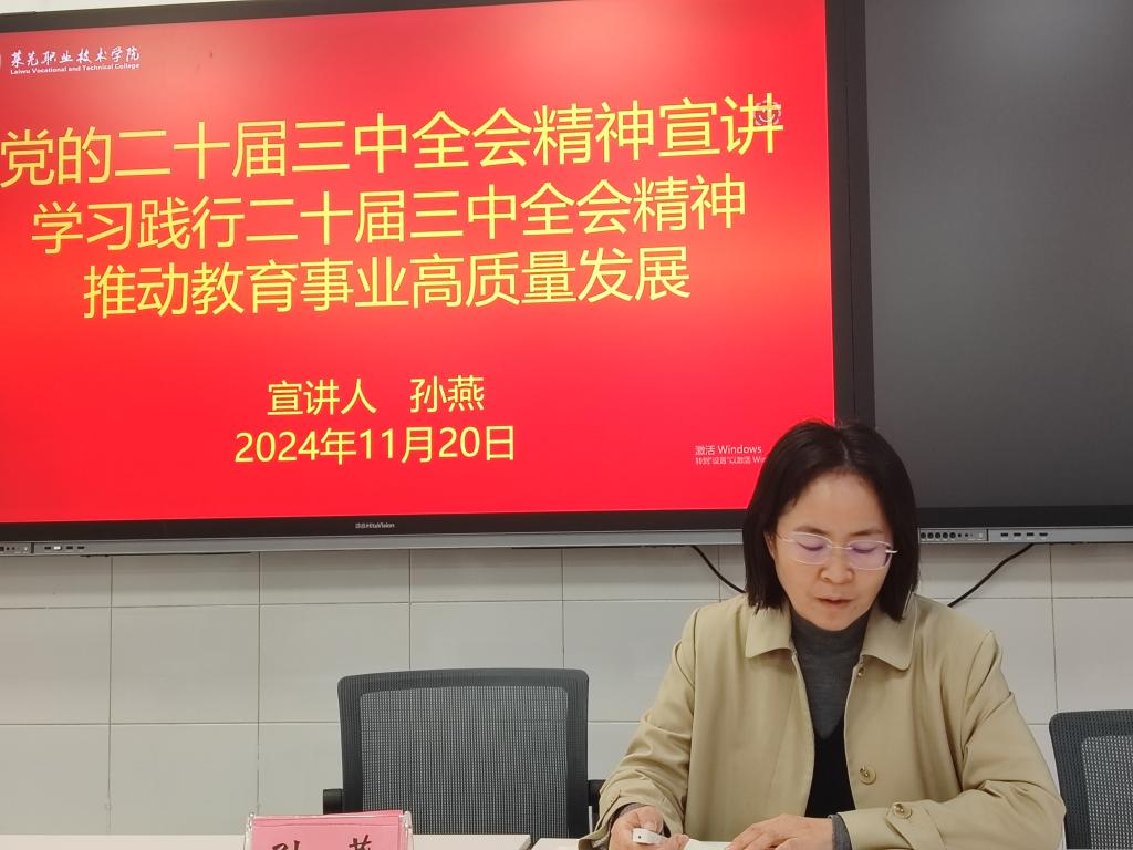 孙燕从“深刻领会二十届三中全会精神的核心要义”“深入学习贯彻习近平总书记关于教育工作的重要论述”“将学习成果转化为推动教育事业高质量发展的实际行动”三个方面对党的二十届三中全会精神进行了系统而深入的阐释。她表示,学习践行党的二十届三中全会精神,不仅是我们当前的重要任务,更是未来一段时间内教育系统发展的核心指引,要深刻认识自身所肩负的责任与使命,将个人的奋斗融入到教育事业的宏伟蓝图之中,以更加充沛的热情、更加务实的态度和更加有力的行动,全力以赴地推动教育系统的高质量发展。