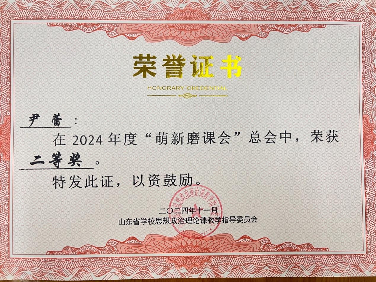 11月29日,2024年度山东高校思想政治理论课“萌新磨课”比赛落下帷幕。经过线上初赛、现场展示的层层选拔,思政教学部尹蕾获得《毛泽东思想和中国特色社会主义理论体系概况》高职组全省二等奖。
