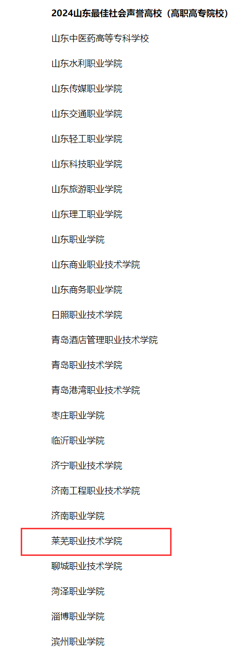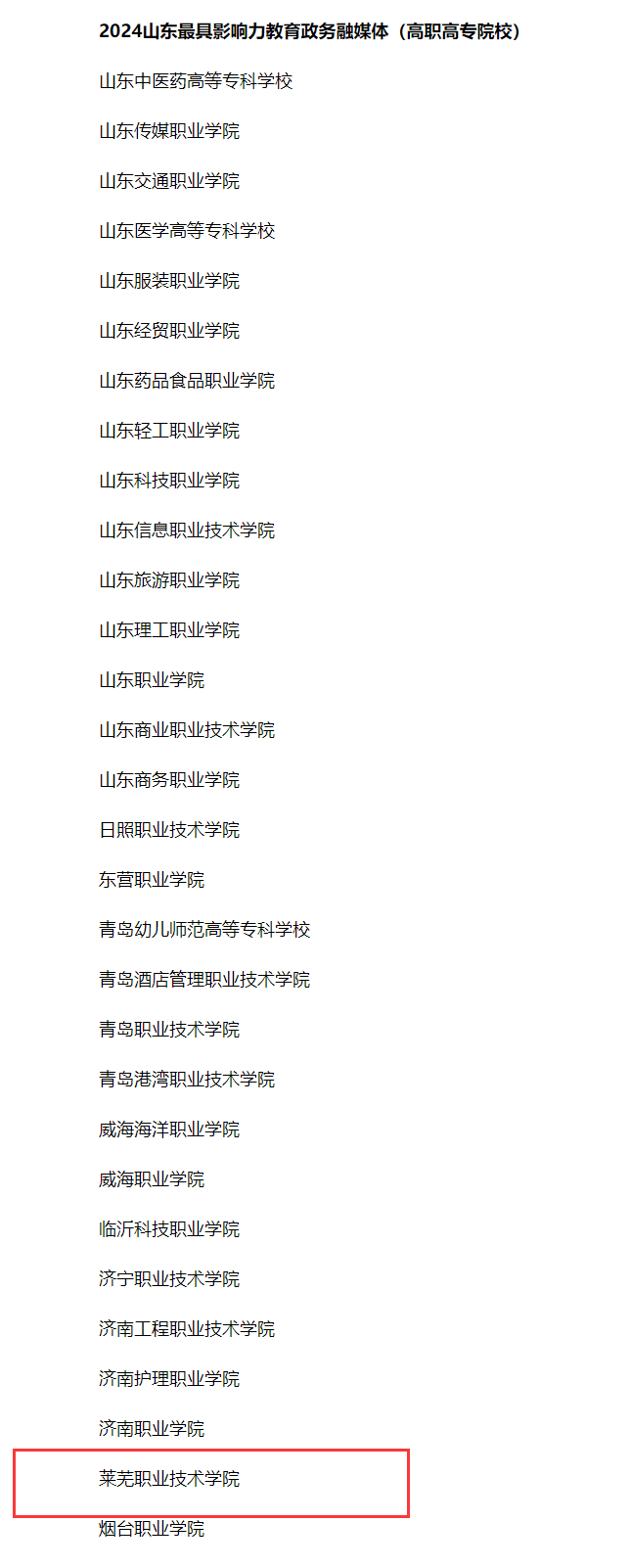 12月13日,山东省互联网传媒集团大众网·海报新闻正式发布“2024山东最佳社会声誉高校”“2024山东最佳品牌影响力高校”以及“2024山东最具影响力教育政务融媒体”三大榜单。学校上榜“2024山东最佳社会声誉高校(高职高专院校)”和“2024山东最具影响力教育政务融媒体(高职高专院校)”。