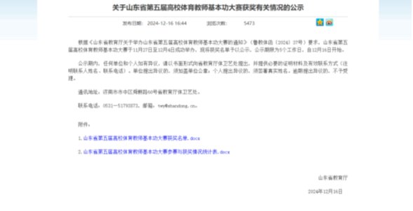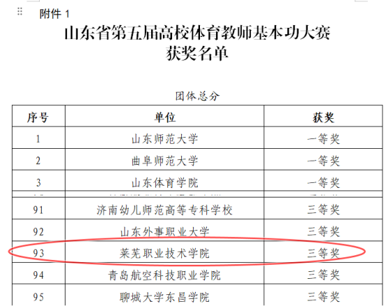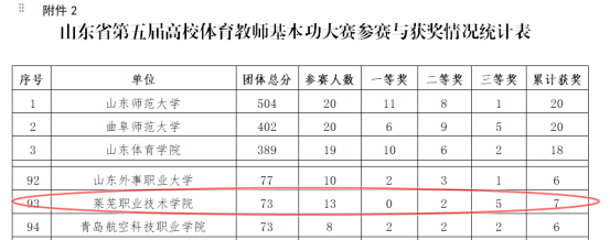 近日,山东省第五届高校体育教师基本功大赛在曲阜师范大学落下帷幕。学校获团体三等奖,教师获二等奖2项、三等奖5项。