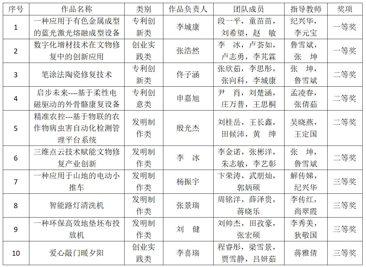 12月21日,第十九届全国高职院校“发明杯”大学生专利创新大赛圆满落幕,学校共有10项作品获奖,其中一等奖2项,二等奖4项,三等奖4项,一二三等奖获奖数量均取得历史最好成绩。