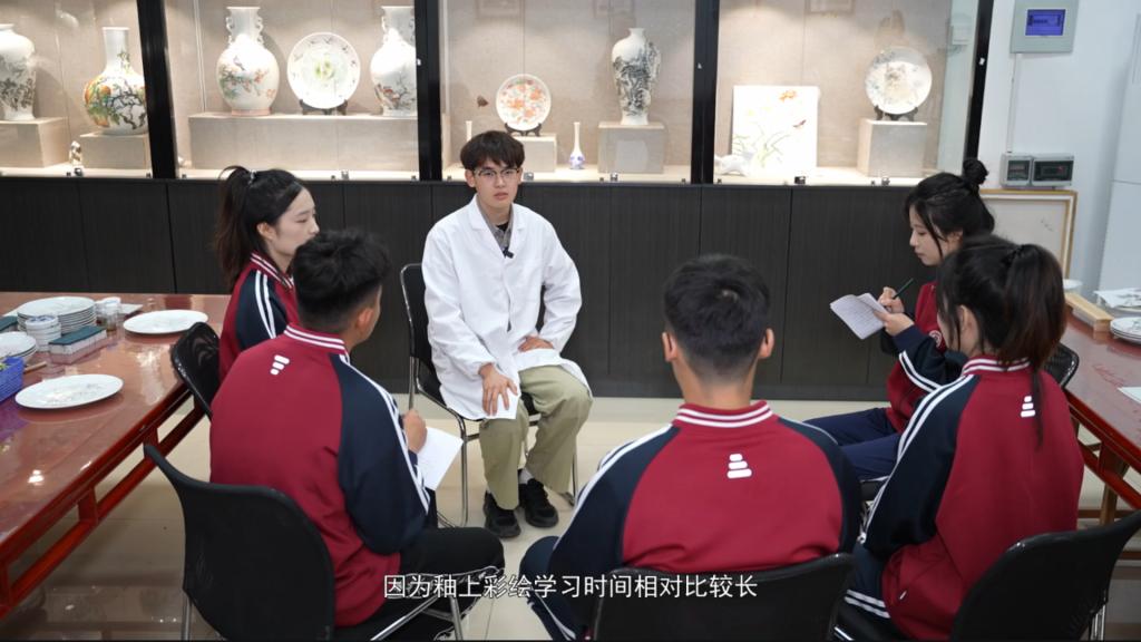 釉上花开由孟荣、姜丽萍、亓娟老师指导,文物与艺术系刘新宇老师、智慧商贸与旅游系苏淑欣、庄雯涵等学生主演。作品“当代青年还需要艰苦奋斗吗”为线索,让学生们身边榜样刘新宇的故事中真切认识到新时代艰苦奋斗的新内涵,培养学生为实现理想,吃苦耐劳、迎难而上的精神品质
