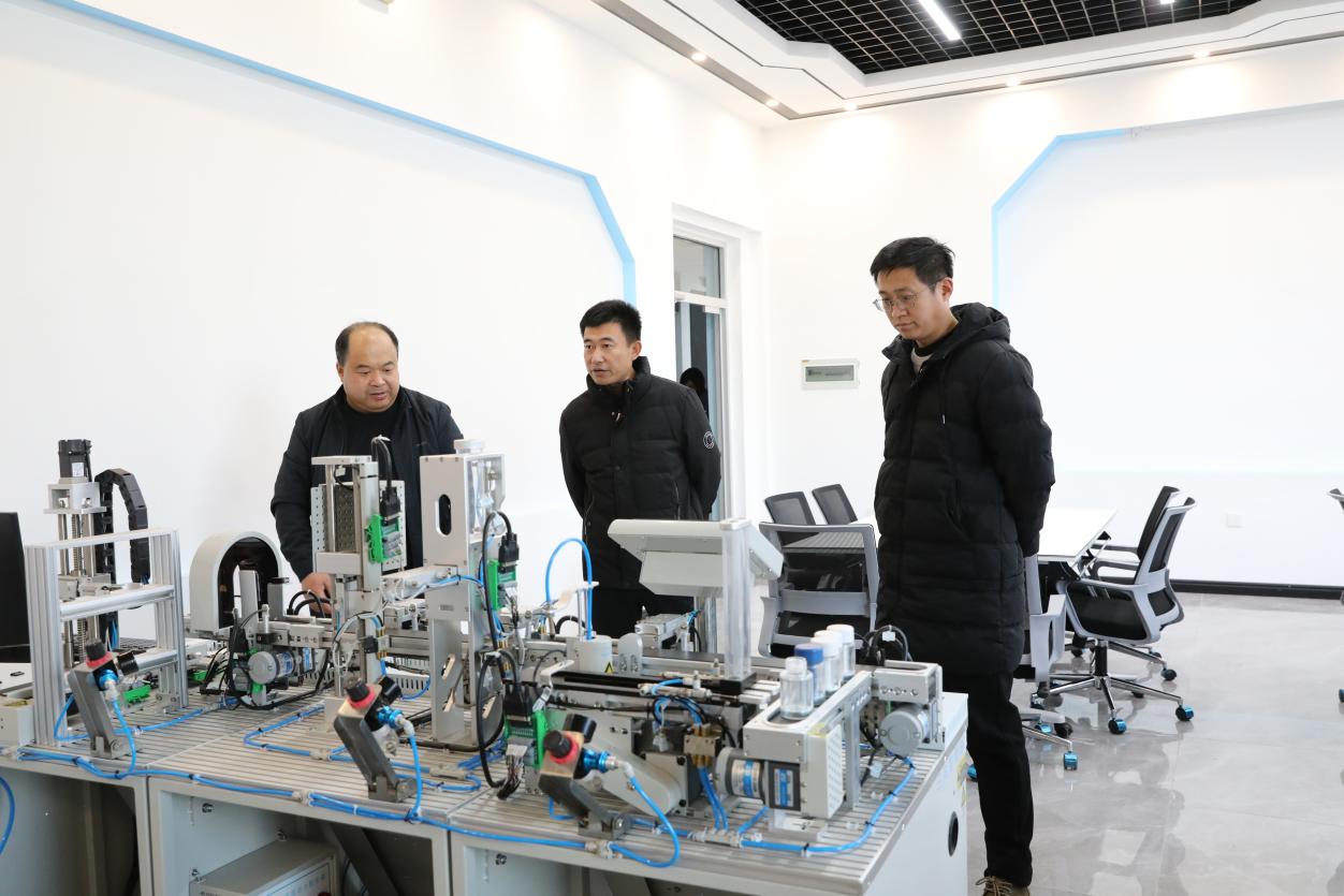 座谈会后,侯庆海、李树真一行分别到学校智能制造系和人工智能系实训室进行了实地考察调研,并围绕专业设置、课程体系构建、教学方法创新、学生技能培养、技能大赛等方面进行了深入交流和研讨。