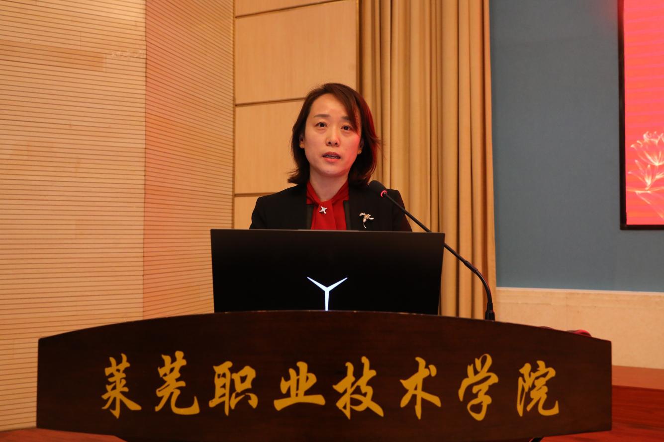 济南市总工会党组成员、副主席张讯,济南日报理论评论部主任惠铭生,济南市总工会女职工部部长苏龙一行,学校党委副书记李允实,党委委员、党委宣传部部长孙燕出席活动,活动由李允实主持。学校工会(妇委会)负责人、各系部妇委会委员及280名学生代表参加。