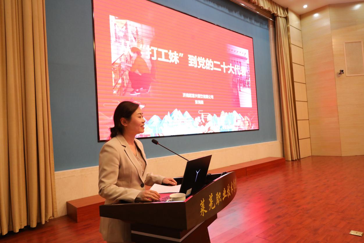张海燕以《从“打工妹”到党的二十大代表》为题,回顾了自己从高中毕业后一步步成长为党的二十大代表的奋斗历程,深刻诠释了平凡岗位亦能铸就非凡,只要用心做事,不断学习,不断进步,心怀梦想,持之以恒,每个人都可以成为能发光的人;孟晓宁用《逐梦盾构的女工程师》的故事,结合大量生动的案例,深入解读了爱岗敬业、一丝不苟、精益求精的工匠精神内涵;王慧慧以《自主创业 大有可为》为题,从自主创业感悟、团队凝聚共克时艰、团队建设和品牌打造、创业者的黄金时代等多个维度,毫无保留地分享了自己的创业成功经验,为即将步入社会的的青年学子提供了宝贵的借鉴;王小琬以《小山窝里的能源女战士》为题,从在扎根中成长、在学习中蜕变、在担当中升华、在奋斗中书写无悔青春等四个方面,讲述了自己在LNG行业多年的实践经验和心得体会,鼓励同学们努力学习专业知识,秉持执着专注、精益求精的态度、勇敢争取,放平心态,做好自己,向着“靠近光、追随光、成为光、散发光”的美好未来奋勇前行。