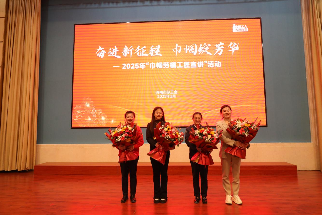 来自生产经营一线的四位巾帼劳模工匠——济南超意兴餐饮有限公司仓储物流中心主任张海燕、济南重工集团有限公司智能掘进技术与装备研究院副院长孟晓宁,山东慧心慧做家政服务有限公司董事长王慧慧,山东港华燃气集团有限公司曹范LNG调峰储配站技术专工王小琬,以亲身经历为蓝本,为师生带来一堂生动的“匠心传承课”。