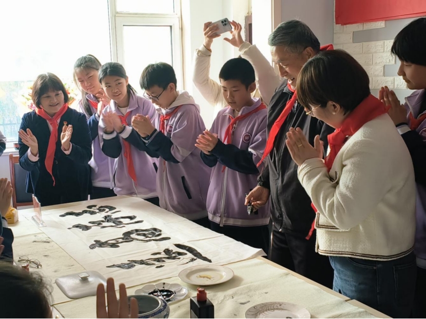 活动中,学生代表为“五老”佩戴红领巾,并献上队礼,表达对长辈们的敬意与感恩。老少携手挥毫泼墨,以书法艺术为媒介,深情歌颂雷锋的崇高精神以及伟大祖国的繁荣昌盛。学生精心准备了丰富多彩的文艺节目,现场欢声笑语,其乐融融。全体人员一同唱响红歌,用激昂的歌声传递对党和祖国的无限热爱。此次活动不仅让师生们深刻理解了雷锋精神的核心要义,更使他们深刻意识到在新时代背景下传承和弘扬雷锋精神的重要价值,激励着大家在日常学习与生活中积极践行雷锋精神