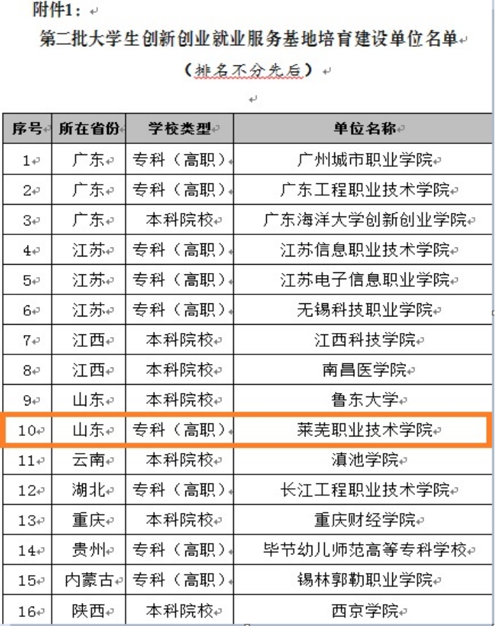 近日,高校毕业生就业协会(教育部主管国家一级社团)正式发布《第二批大学生创新创业就业服务基地培育建设单位名单》,全国共有16所高校入围,学校凭借完善的创新创业教育体系和突出的育人成效成功入选,成为山东省唯一入选的高职院校。