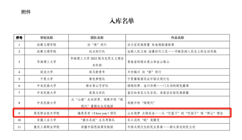 近日,由高等教育出版社联合南开大学、中教华影举办的首届“我眼中的新时代”大学生实践类思政作品入库成果展播活动入选名单公布,学校思政教学部报送的作品《山水筑梦 点绿成金——从“竹篮子”到“竹园子”悟“两山”理论》成功入围。