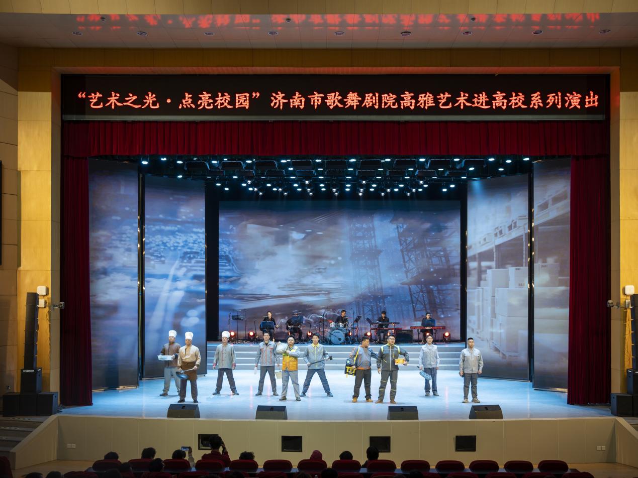 4月1日下午,“艺术之光·点亮校园”济南市歌舞剧院高雅艺术进高校系列演出在学校举行。济南市歌舞剧院党支部书记、院长、剧目导演李大海,学校党委委员、副院长周美栋,党委委员、党委宣传部部长孙燕出席活动。1100余名师生代表现场观看演出。