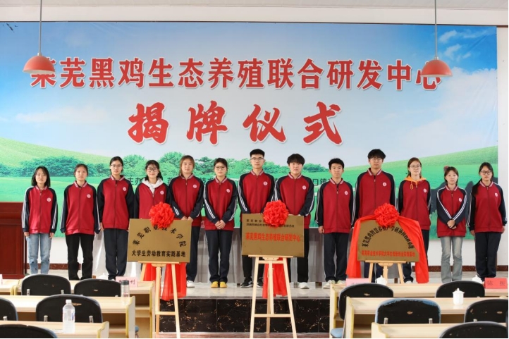 仪式上,“莱芜黑鸡生态养殖联合研发中心”“beat365在线唯一官网大学生创新创业实践基地”揭牌。