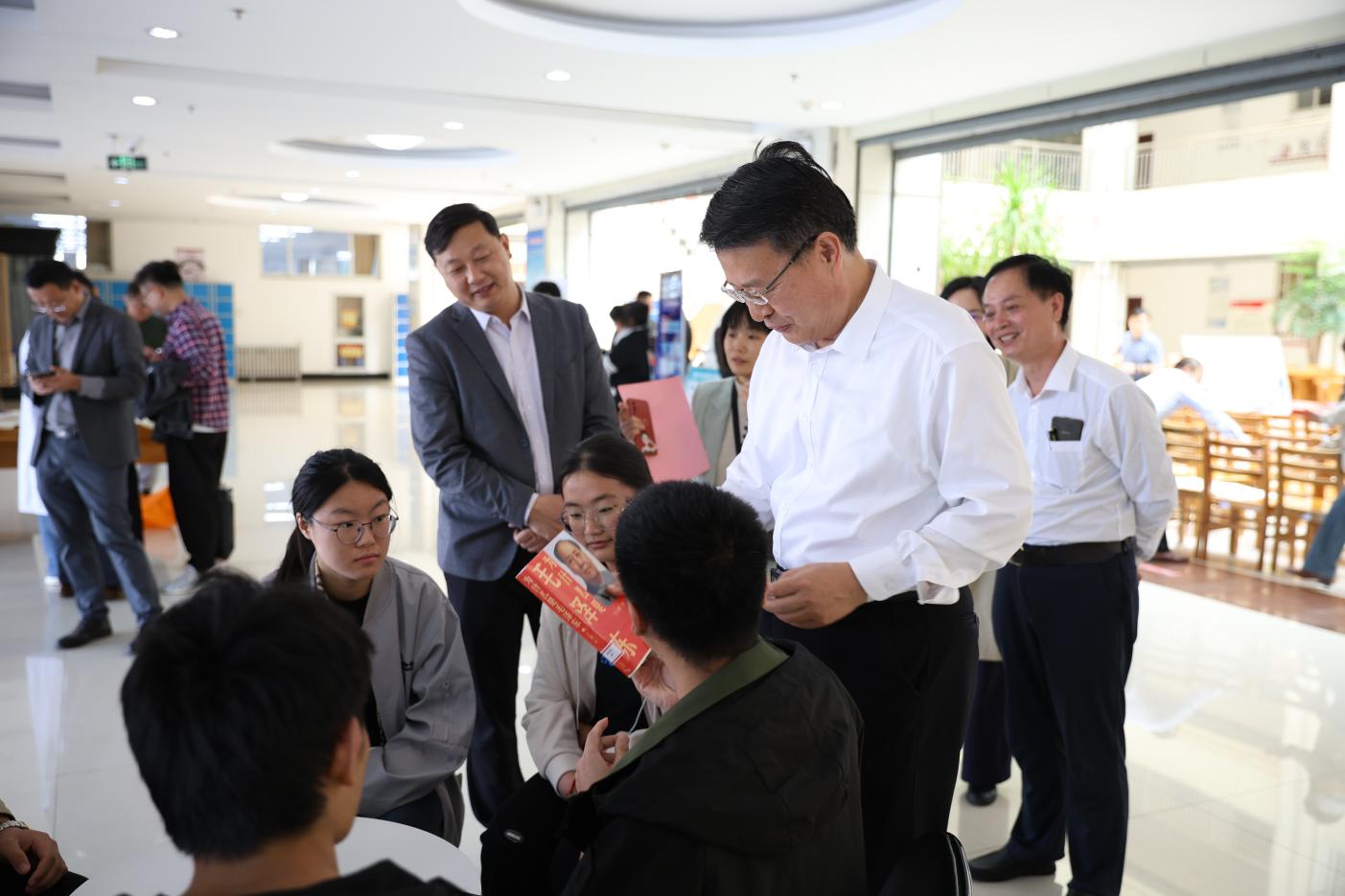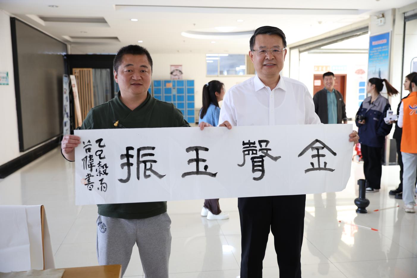 仪式结束后,校领导和师生代表参观体验了书法展示、图书推荐活动、读书分享会、数字资源宣传推广等。