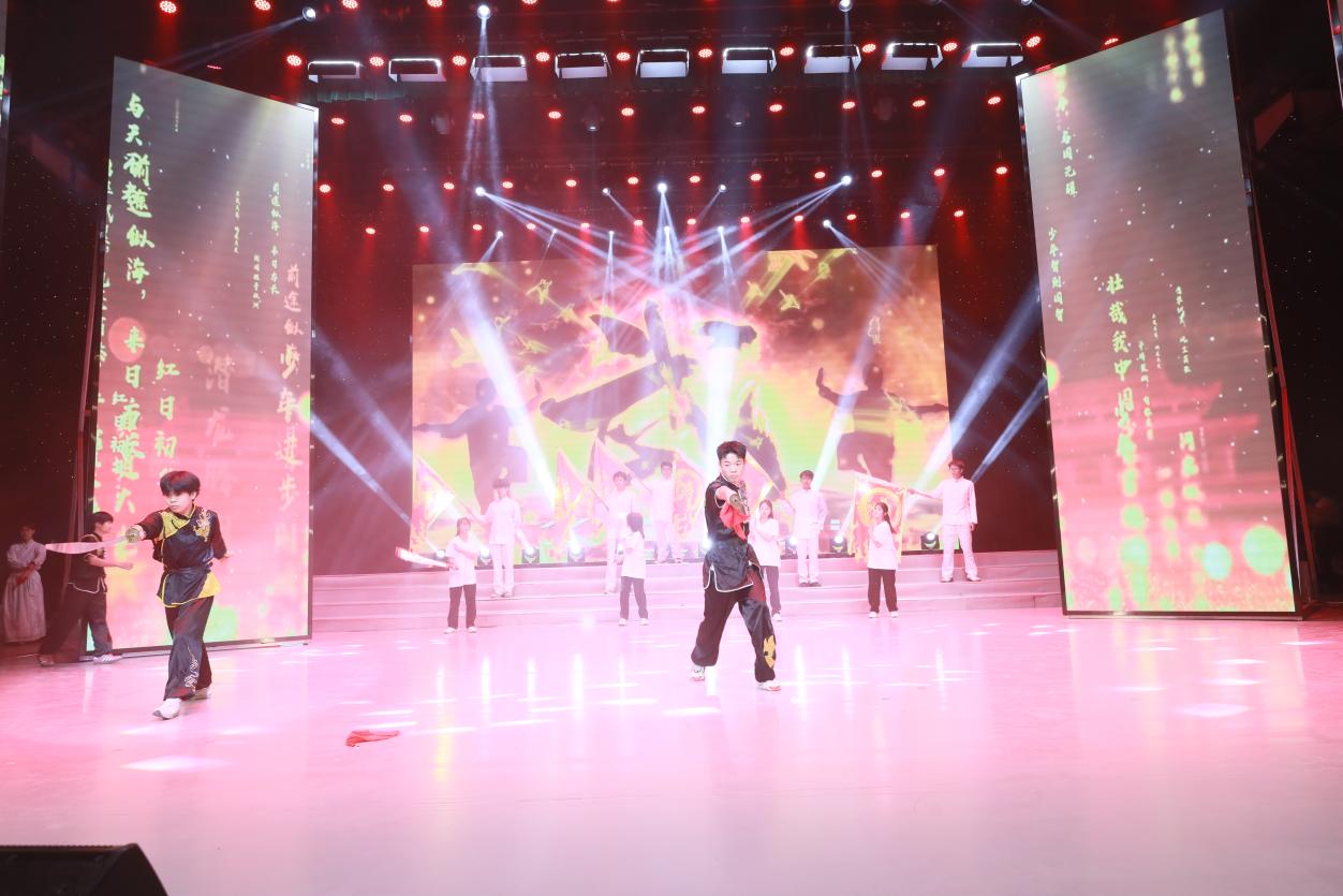 演出在鼓乐《一鼓作气》中拉开帷幕,由泱泱华夏、菁菁校园、强国之路、再次出发四个篇章组成。