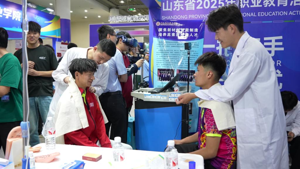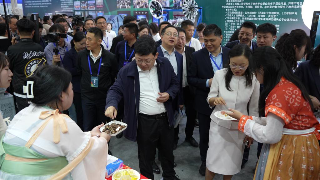 5月11日,山东省2025年职业教育活动周在济南舜耕国际会展中心开幕。山东省委教育工委委员,省教育厅党组成员、副厅长李鹏等出席启动仪式并讲话,济南市人民政府党组成员、副市长任广锋致辞。启动仪式由济南市教育局党组书记、局长、市委教育工委常务副书记王纮主持。学校党委副书记、院长徐运国参加相关活动并到学校展区现场指导。