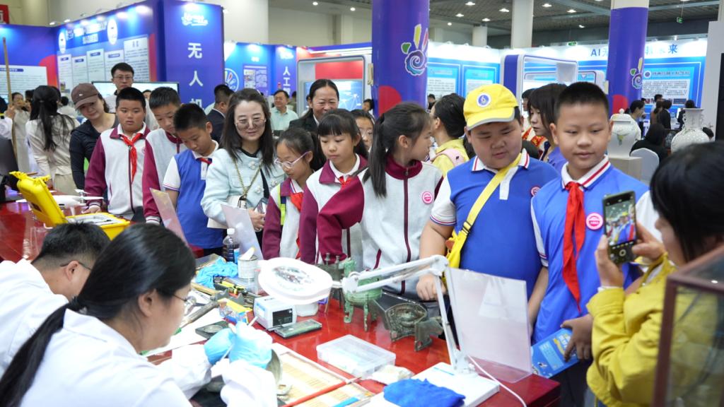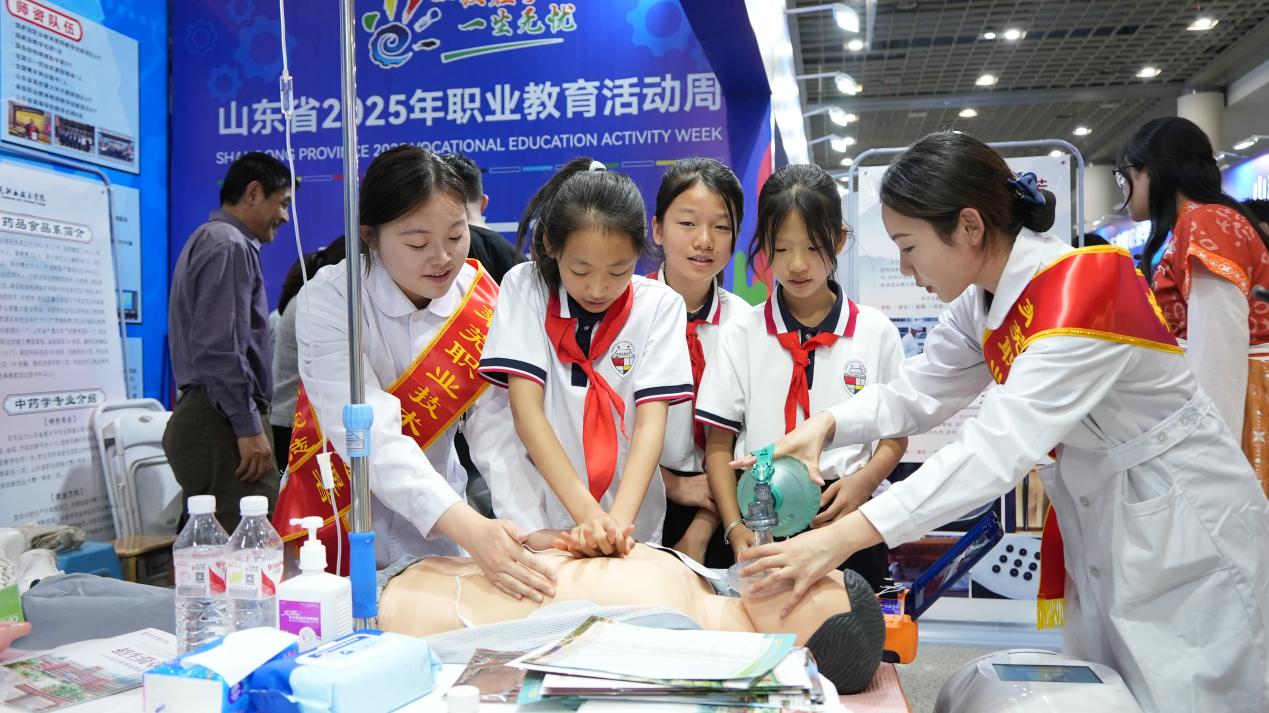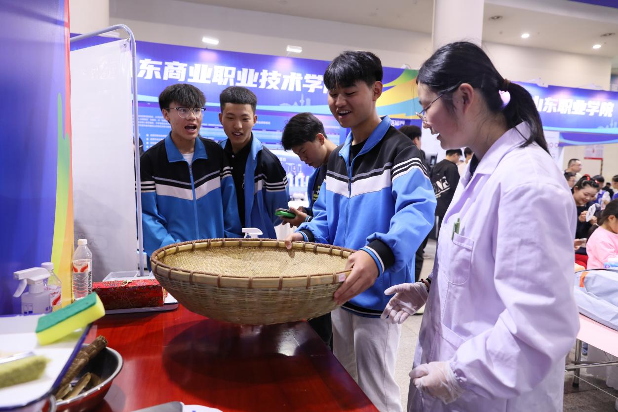 在学校风采展示区,学校智能制造系、智慧商贸与旅游系、文物与艺术系、医学技术与护理系、药品食品系联袂登场,通过现场展示,全方位呈现职业教育特色与实力。