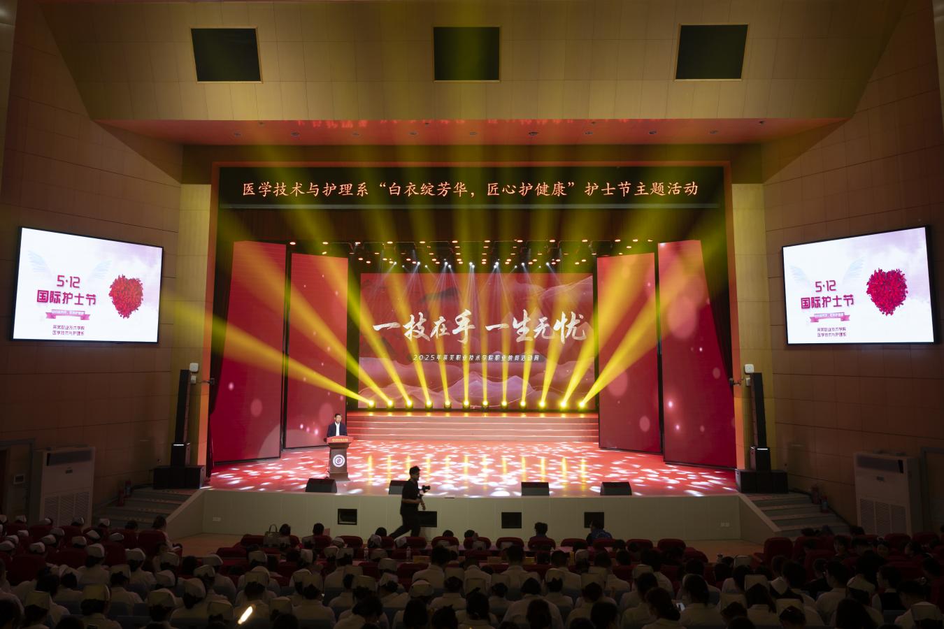 在国际护士节前夕,医学技术与护理系以“一技在手,一生无忧,白衣绽芳华,匠心护健康” 为主题,开展了形式多样的职业教育活动。活动有幸邀请到济南市人民医院的带教老师分享宝贵的临床带教经验,优秀毕业生也倾情讲述自己的备赛与成长历程。此外,学生护士礼仪表演成为一大亮点,他们用规范专业的动作展现了护理学子严谨的职业素养。此次系列活动不仅加深了学生对护理职业的理解,更激发了他们对护理事业的热爱与追求。
