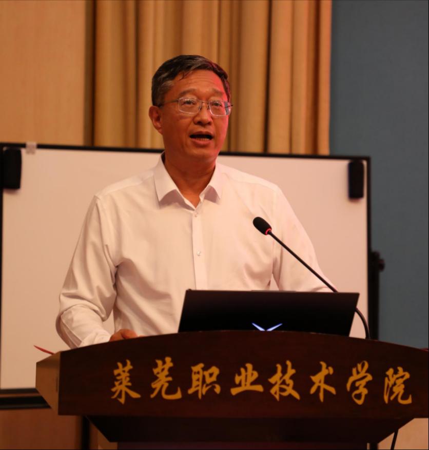 在专家报告阶段,王岳喜教授以《构建高职院校专业群思政育人体系的思考》为题,深入剖析了“专业群思政育人体系”建设的必要性、原则和主要观测点,为进一步推进山东省课程思政建设提供了新的思路和方向。