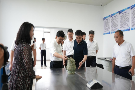 在文物与艺术系,任广锋听取学校文物相关专业建设情况,详细了解专业课程设置、人才培养模式及校企合作情况,对学校在文博领域取得的成绩给予高度评价。他指出,学校文物类专业立足地方文化资源,聚焦行业发展需求,形成了鲜明的办学特色和显著的专业优势,培养出一批理论基础扎实、实践能力突出的技术技能型人才,为山东省乃至全国文物事业贡献了“莱职力量”,在文化遗产传承与保护工作中发挥了重要作用。希望学校进一步发挥专业优势,深化产教融合,加强与省内外各文博单位合作,建设好全国文物保护产教融合共同体,打造产学研用一体化平台,让学生在实践中提升专业技能;要强化科技赋能,紧跟文物数字化保护、预防性保护等前沿技术,推动传统修复技艺与现代科技深度融合,提升文物保护的科技水平;要注重文化传承,结合山东地域文化特色,加强对龙山文化、齐文化等历史文化遗产的研究与保护,培养学生的文化责任感和使命感。