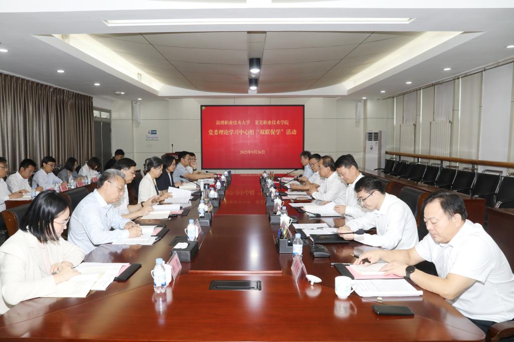 为深入学习贯彻习近平新时代中国特色社会主义思想,进一步提升党委理论学习中心组学习质效,9月26日上午,学校与淄博职业技术大学开展党委理论学习中心组“双联促学”活动。两校党委理论学习中心组成员参加。