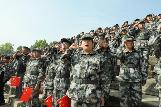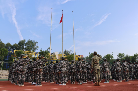 在雄壮的国歌声中,全体起立,面向国旗,行注目礼,闭营仪式正式开始,这也标志着为期两周的军训即将正式结束。