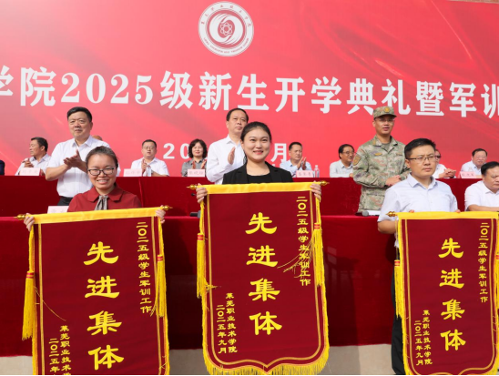 徐运国向2025级新生提出三点希望:一要胸怀理想,勇担使命,做信念坚定的“奋斗者”,将“小我”融入“大我”,以“强国有我”的担当坚定理想信念,肩负起时代赋予的历史使命。二要深耕专业,苦练本领,做勤学笃行的“实干者”。要继续发扬军训中攻坚克难的精神,把“不怕苦、反复练”的信念运用到专业学习上,不断提升自己的认知能力和职业素养。三要锐意进取,激扬青春,做朝气蓬勃的“追梦者”。要在扎实掌握专业技能的同时,锤炼品德修养,拓宽自身视野,积极践行学校“无体育 不青春”的体育文化理念,把自己打造成德技并修、知行合一的高技能人才,用实实在在的成绩,让青春梦想绚丽绽放。