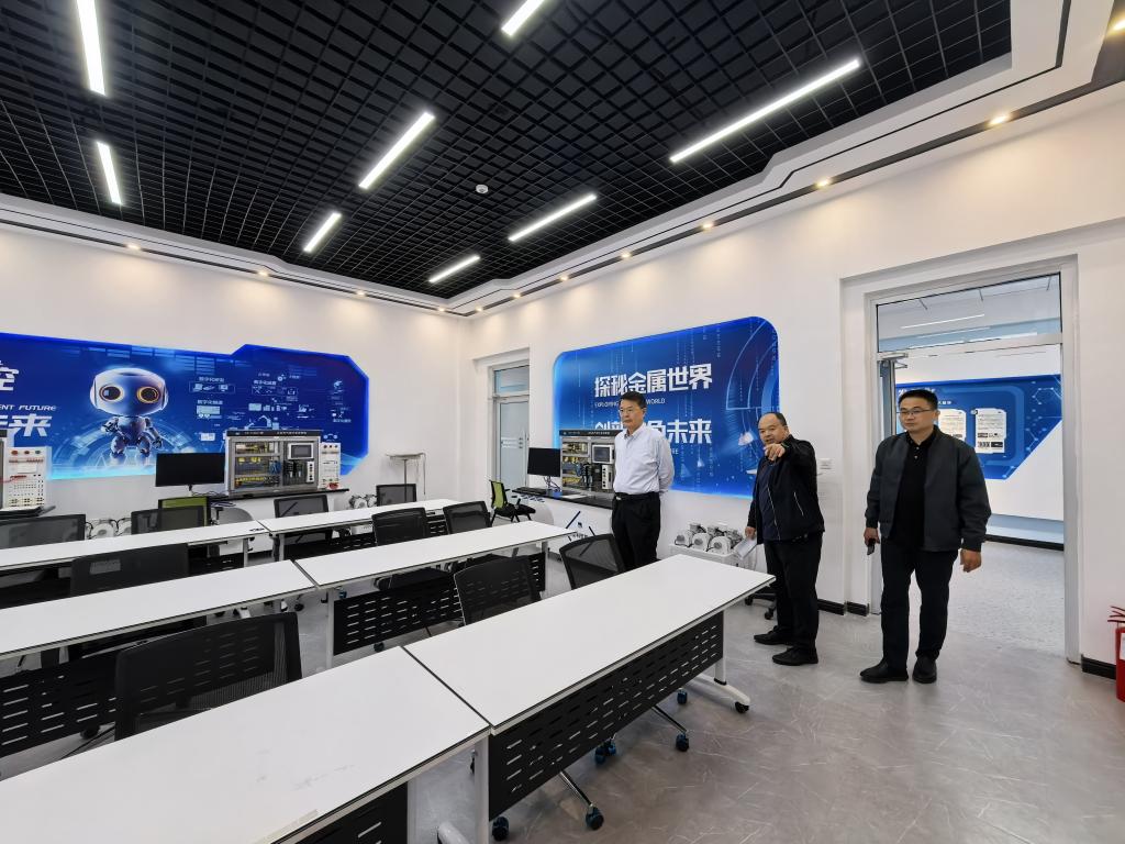 在粉末冶金智能制造虚拟仿真实训基地,孔祥敏实地查看了粉末冶金智能制造集控中心、公共虚拟仿真实训室、专业虚拟仿真实训室、炼钢虚拟仿真实训室、增材制造实训室、数字孪生实训室和机器视觉实训室,详细了解设施设备状况和安全管理保障措施,以及当前面临的实际问题。