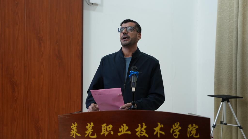 徐运国对远道而来的嘉宾表示欢迎,并介绍了学校的整体办学情况。他指出,本次培训是学校服务企业海外发展、深化产教融合的一项重要举措,旨在为海外企业属地班组长的综合管理能力提升提供坚实支撑。希望各位学员在培训期间积极交流、互学互鉴,不仅提升专业素养与管理水平,也进一步感知中国文化、领略山东特色,努力成为中外企业合作与民心相通的桥梁。