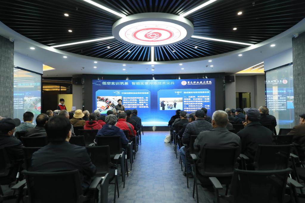 在解说员的引导下,离退休教职工依次走进文物专业实训室、中药博物馆、低空空域管控服务中心和初心馆,了解学校在文物修复及传统艺术创新、药品研发与食品安全检测、低空经济等领域的探索创新与成果应用。在图信中心报告厅集体观看了学校高质量发展宣传片,了解学校近年来在教学科研、师资队伍建设、人才培养等方面取得的显著成就,对学校的发展有了更全面、更深入的了解,也为学校的飞速发展感到由衷的自豪。