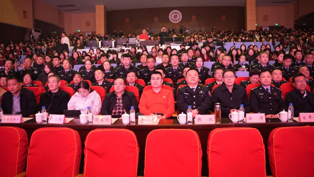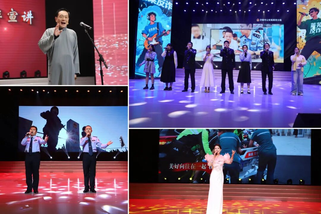 演出在反诈表演唱《擦亮你的眼》中拉开帷幕,朗朗上口的歌词配合大屏幕视觉呈现,迅速点燃现场气氛。相声《千万别提钱》、小品《自作自受》等节目取材真实案例,以幽默诙谐的方式揭露骗局套路,传递防诈知识,引得师生掌声笑声不断。山东快书表演艺术家阴军老师的传统快书、唢呐合奏《赶大车》、歌曲《再一次出发》《反诈唱起“莱”》等节目轮番登场,既展现公安文化的深厚底蕴,也彰显警民同心、共筑防线的坚定信念。
