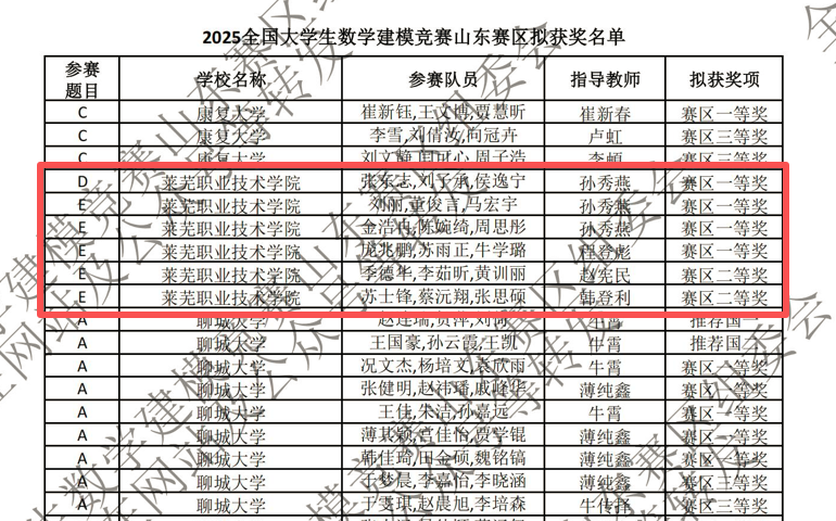 学校在2025年全国大学生数学建模竞赛山东赛区竞赛中再获佳绩