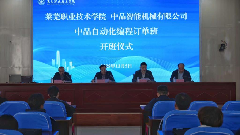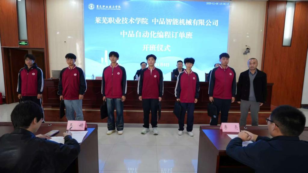 11月5日,学校举行中品自动化编程订单班开班仪式。中品智能机械有限公司副总经理殷天帅,中品智能机械有限公司培训部主任刁浩毅,学校党委委员、副院长周美栋出席开班仪式。开班仪式由智能制造系主任宋健主持。