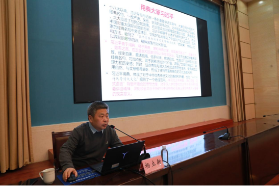 11月17日下午,学校凤鸣大讲堂学术报告会邀请《习近平用典》典故释义作者杨立新作专题报告。学校党委书记徐运国,党委委员、副院长贾友军,党委委员、党委宣传部部长孙燕,济南市政协办公厅副主任曹湧,济南市政协机关党委专职副书记刘继春,济南市社科联机关党委专职副书记、组织人事处处长刘霞出席报告会。报告会由贾友军主持。