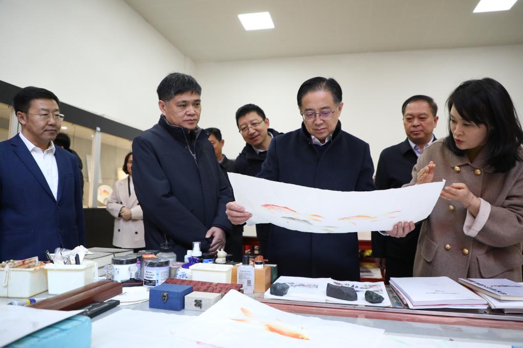 会前,在学校领导班子成员的陪同下,王纮一行参观了学校文物与艺术系实训基地,实地察看专业建设、教学实训开展情况,并与系部师生深入交流,详细询问专业人才培养方案、课程设置、校企合作及学生职业发展规划等情况,认真倾听师生在教学实践、学习成长中的心得感悟与需求建议,对文物与艺术系在传承文化遗产、培育文物修复人才等方面的探索与成效给予肯定。