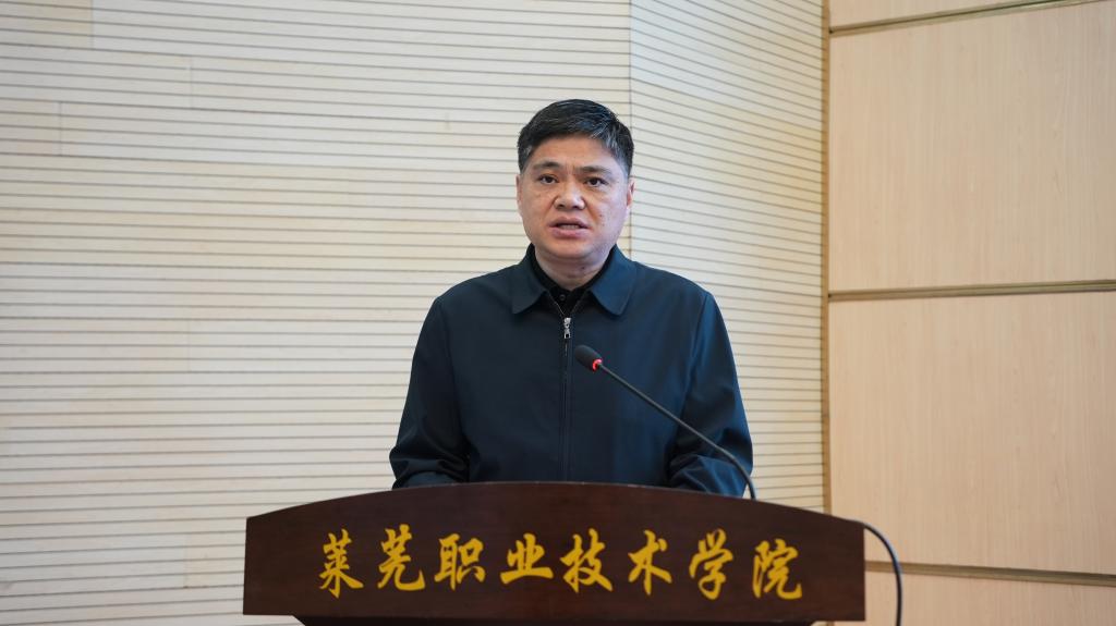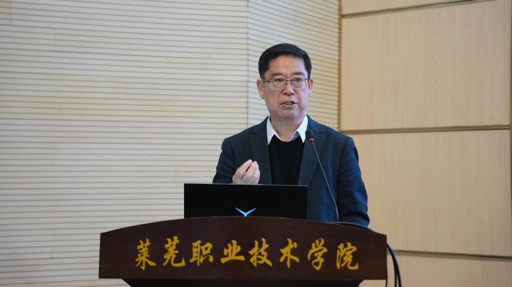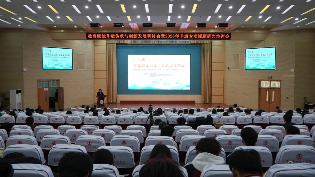 11月24日上午,由中国成人教育协会指导和主办,中国成人教育协会非遗传承教育培训专业委员会、山东省省会经济圈产教联合体文化建设和国际交流委员会、学校共同承办的教育赋能非遗传承与创新发展研讨会暨2026年非遗专项课题研究培训会在学校召开。中国成人教育协会副会长赵跃进;文化和旅游部艺术发展中心专家尚虎辰;济南市教育局党组成员、副局长王志国;山东省人大代表,山东省社会组织总会党委书记、会长,山东省省会经济圈产教联合体常务执行秘书长王安忠;中国成人教育协会非遗传承教育培训专业委员会秘书长张鹏飞;济南市莱芜区文化和旅游局党组成员、副局长王美玲;学校党委副书记、院长杨洪涛出席活动。相关高等院校代表、非遗企业代表、学校各单位负责人和师生代表参加活动。仪式由学校党委委员、副院长任清华主持。