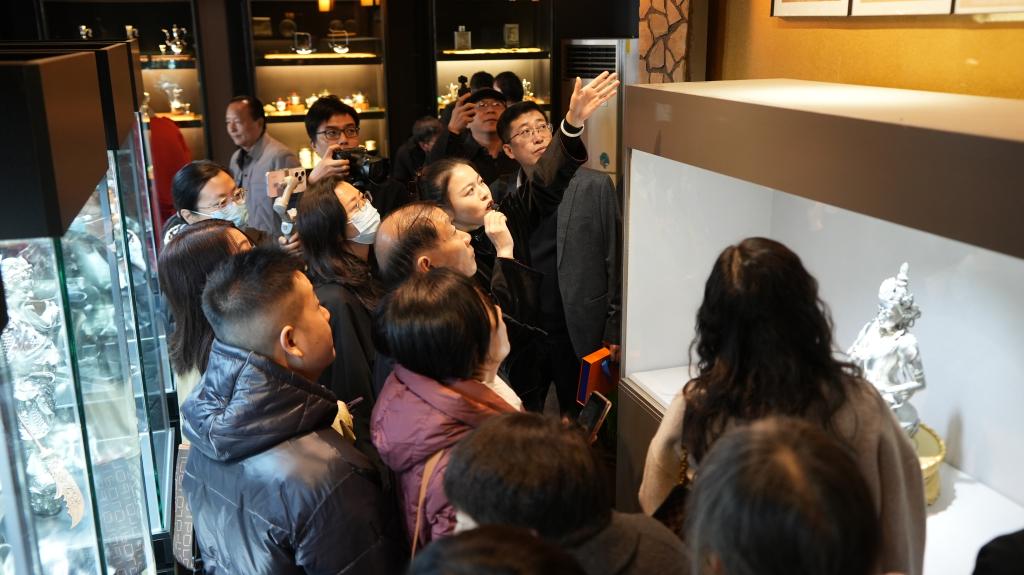 与会代表先后走访了济南市树军燕石奇石有限公司、鲁王工坊、山东泰顺斋食品有限公司、山东汉唐臻品饰品有限公司四家非遗代表企业,实地感受传统工艺与现代发展的有机融合。在济南市树军燕石奇石有限公司,大家观摩了燕石从采集、打磨到艺术创作的全过程,领略自然与匠心交融的独特魅力;鲁王工坊内,国家级非遗莱芜锡雕的传承脉络娓娓道来;泰顺斋食品公司则以其南肠制作技艺为载体,讲述着百年老字号的味觉传承;而在汉唐臻品饰品公司,传统工艺与现代设计理念的巧妙融合,展现出非遗走进当代生活的无限可能。