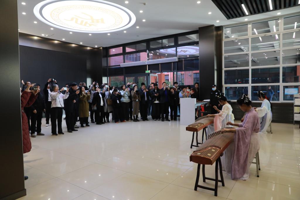 在文物与艺术系非遗教学现场,震撼的迎宾“长勺战鼓”拉开活动序幕。伴随悠扬古筝、曼妙汉舞,参会者仿佛穿越时空,沉浸于传统文化的氛围之中。文物展室中,精美瓷器、珍贵艺术品与非遗作品并列展出,生动呈现“文物活化”与非遗传承的内在联系。