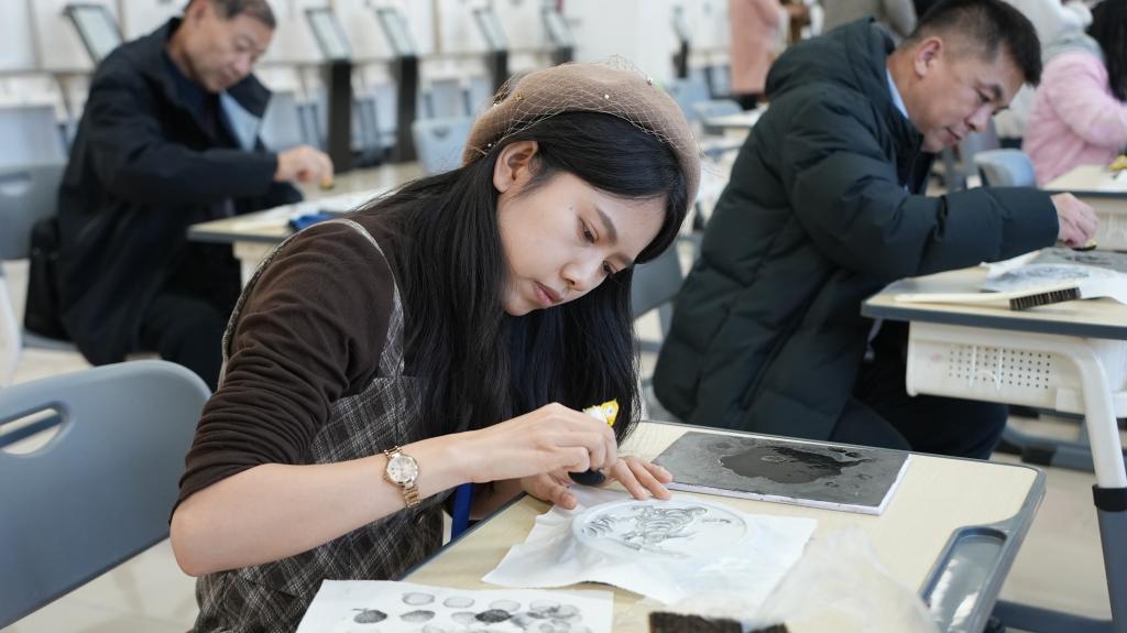 茶艺展示环节,非遗茶艺传承人演绎传统茶道礼仪,并讲解其与现代品茗方式的融合。此外,来自15家非遗传承单位的铜镶锡、古琴斫制等技艺展示,也引得专家频频驻足,交流不断。随后,大家亲手体验“传拓”古文字与古器物纹饰,体会非遗技艺所蕴含的“慢工巧艺”。