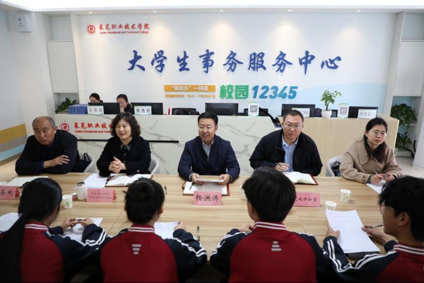 12 月 5 日下午,学校举行“倾听心声 共话成长”校长与学生干部代表座谈会。党委副书记、院长杨洪涛与学生干部代表们围坐一堂,面对面倾听同学们在学习生活中的困惑诉求,零距离回应成长发展中的现实需求。党政办公室、党委学生工作部(学生工作处)(团委)、教务处、总务处等部门负责人陪同座谈,共同为学生成长保驾护航。