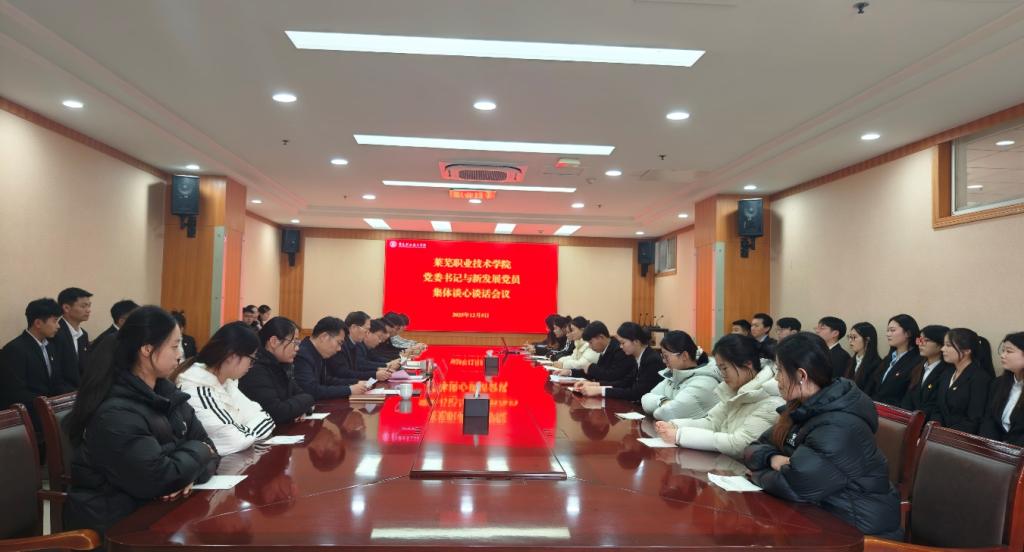 12月5日下午,学校召开新发展预备党员谈话会议。学校党委书记徐运国出席会议,党委委员、党委组织部(党委统战部)部长刘铖主持会议。各系组织员和新发展党员参加会议。